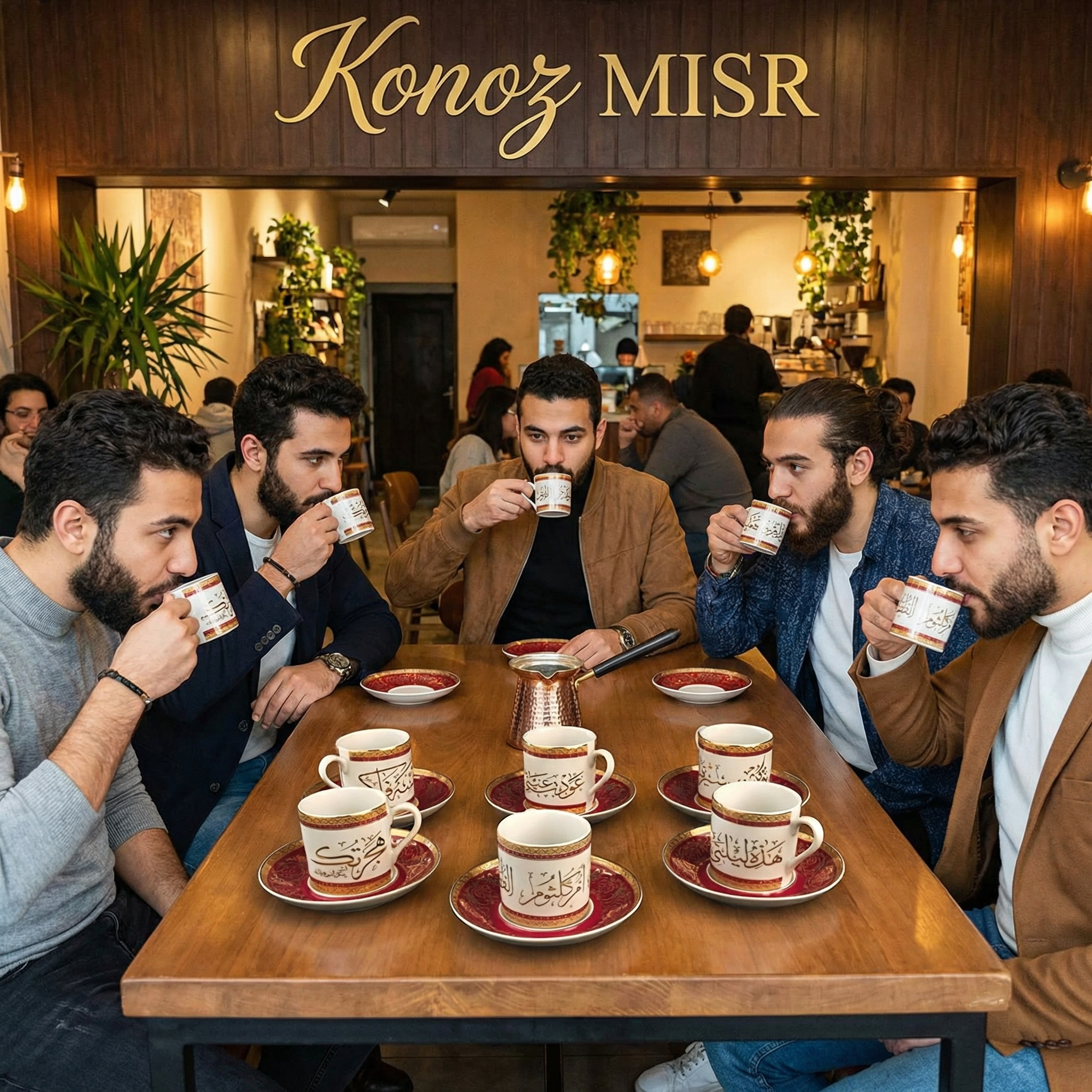طقم فناجين قهوة "السلطانة" بورسلين فاخر - المصرية الألمانية فتحي محمود - فخامة الخط العربي من كنوز مصر