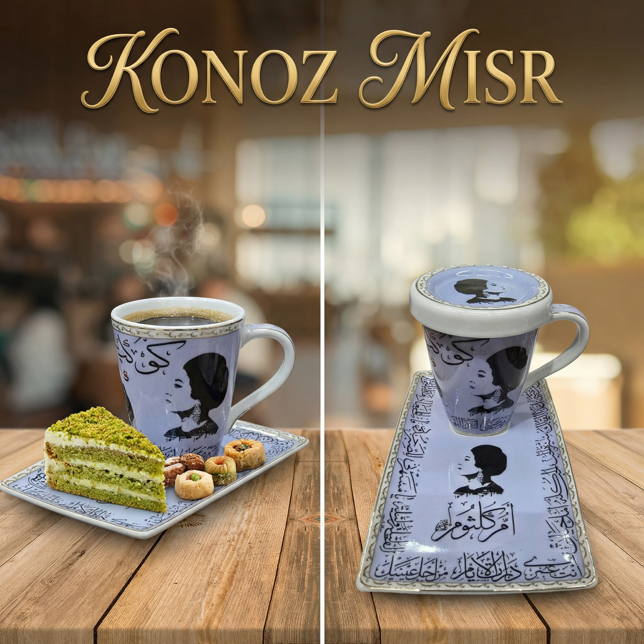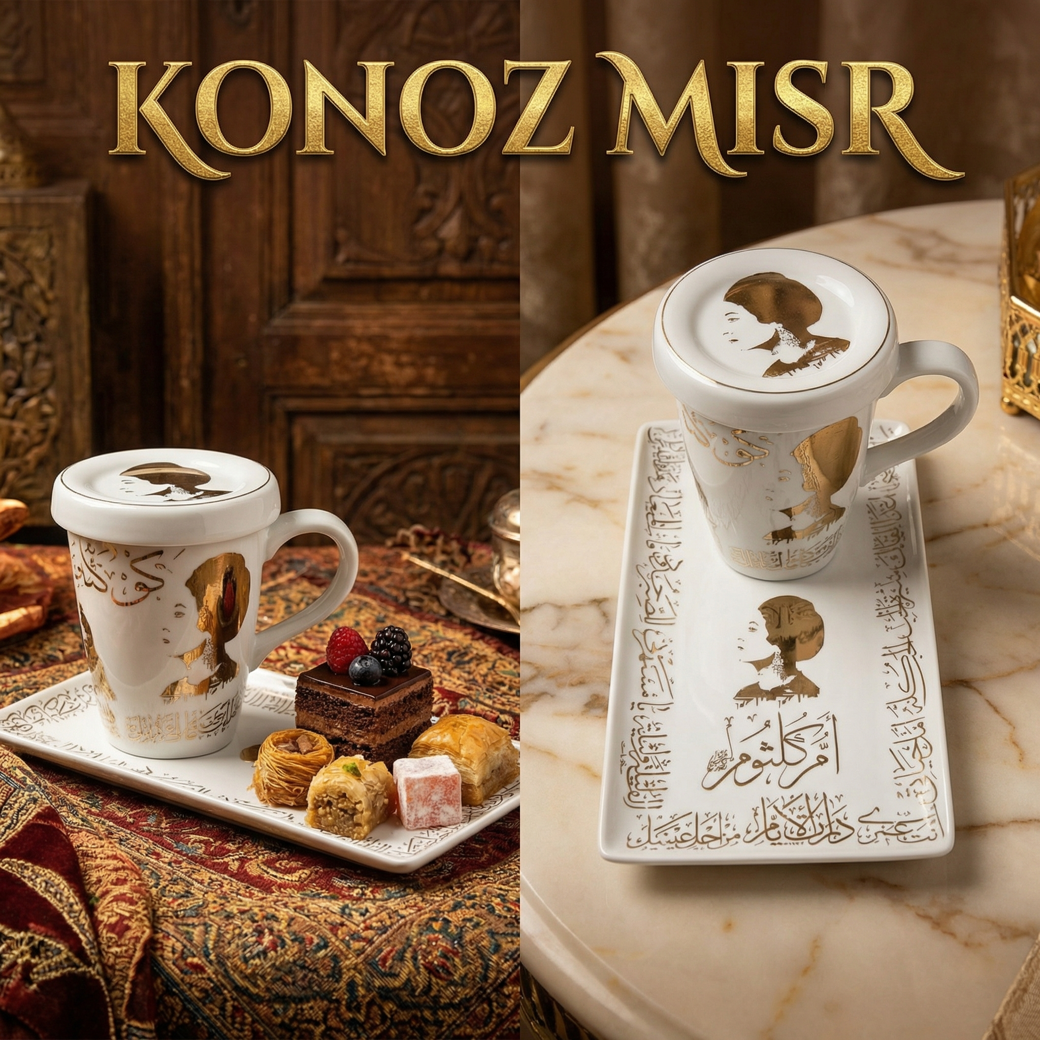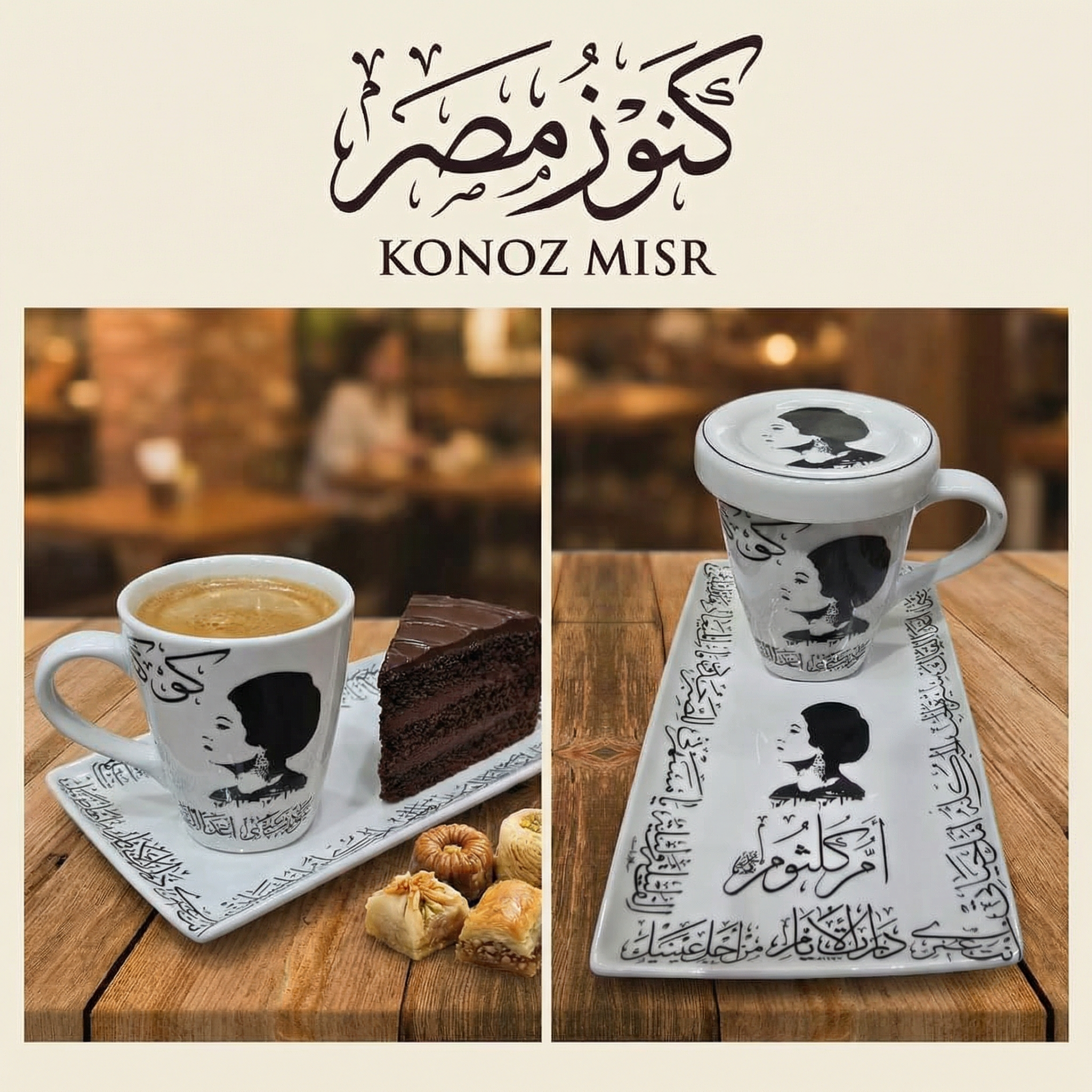 طقم "كوكب الشرق" أم كلثوم ☕ بورسلين فاخر تراثي بغطاء - المصرية الألمانية فتحي محمود - تحفة فنية للضيافة الراقية وعشاق التراث الأصيل من كنوز مصر